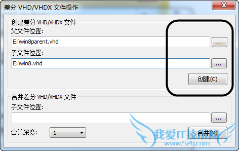 3.父文件位置 选择win8parent.vhd或win8parent.vhdx,子文件位置选择win8.vhd或win8.vhdx
