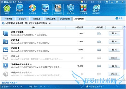 3.点击“系统瘦身”标签,日积月累,系统盘中可有可无的文件越来越多,不但占用磁盘空间,而且影响系统性能,手工清理既不方便,也不安全,能智能检测和清理系统盘中可有可无的文件,释放磁盘空间。