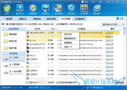 2.然后点击“大文件管理”,根据扫描结果自行对大文件删除或者转移,如果你不清楚哪些大文件可以迁移,就点击这里