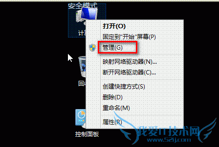 2. 计算机图标上点击右键---“管理”---“计算机管理”;