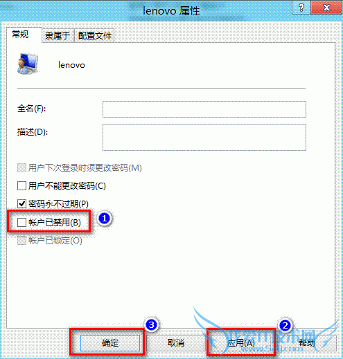 将“用户已禁用”的选项取消---点击“应用”---“确定”,重启电脑后问题即可解决。