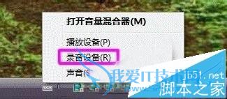 1、打开声音调节板,在右下角的小喇叭上点右键,选择“录音设备”。