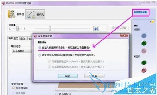 4、音频管理器设置,双击打开右下角的“红色小喇叭”;或者是:开始-设置-控制面板-高清声卡。扬声器“喇叭组态”设置。 在音效栏中继续设置 -“默认格式”设置--- 麦克风“麦克风效果”设置-“默认格式”设置-设备高级设置”。
