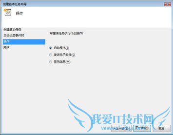 选择与迷你Office相关的日志后,单击“将任务附加到此事件”,“创建基本任务”向导即可自动运行。如图5所示,可看出向导共分4步,其中前2步可取默认设置,到第4步即指定响应事件时,可以而且只能选择“启动程序”、“发送电子邮件”、“显示信息”等中的一项。本例中,我们选择“显示消息”,按提示输入要显示的内容即可。这一任务不能在事件查看器中观察到,它将出现在“任务计划程序”中,如图6所示。