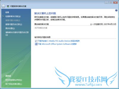 单击“开始→所有程序→问题报告和解决方案”即可打开它(见图8)。从使用上看,常用的两项有:“查看问题历史记录”和“检查新解决方案”。