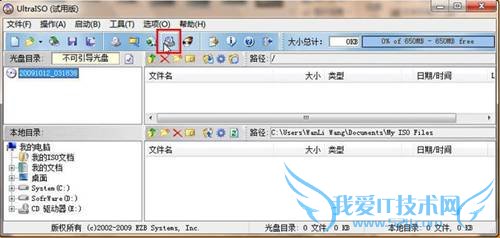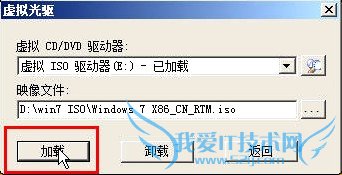 加载下载好的Windows7ISO,在ultraISO选择工具(F6),加载到光驱。