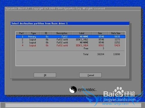 选择完第一个硬盘后,此时需选择将备份文件恢复到哪个分区,1代表C盘,以此类推,如下图8