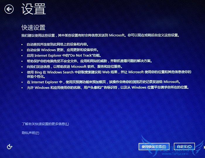 6. 通常在“设置”界面可建议直接点击“使用快速设置(E)”即可。如下图所示: