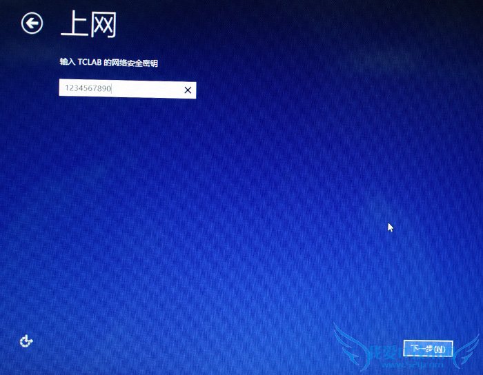 5. 如果选择了无线网络连接,输入正确的安全密钥后点击“下一步(N)”按钮即可。如下图所示: