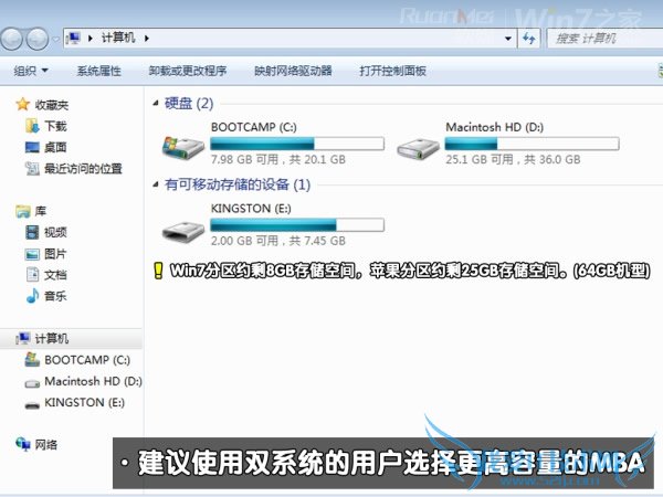 实现双系统大致有两种方法,一是通过Mac OS上的虚拟机,优点是文件易于管理,确定是对性能要求较高,二是独立安装Windows操作系统,对于采用低功耗平台的MBA来说,肯定是独立安装比价好啦。