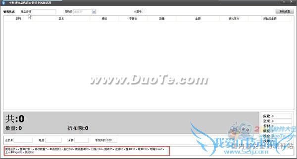 第三步,打开小财迷店铺收银系统的“前台收银”模块,顾客显示屏中将会显示出“前台收银”窗口,在窗口的下方有各项收银功能的快捷键提示,安装提示可以轻松完成收银工作。