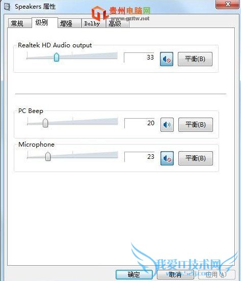 注意一个细节设置可能导致杂音的出现,就是播放设备的级别设置不应太高;