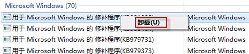 (注意: 有些更新右键单击后,可能没有“卸载”菜单弹出。因为更新文件是有先后顺序的, 若是被别的更新或程序关联,就无法直接卸载掉。)