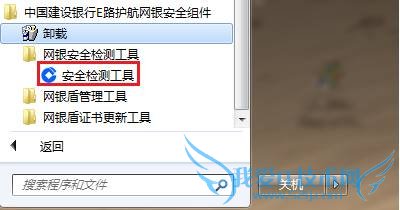 其中“安全检测工具”的具体路径为“开始”->“所有程序”->“中国建设银行E路护航网银安全组件”->“网银安全检测工具”->“安全检测工具”,如下图所示: