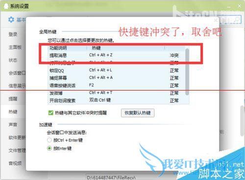 6、我们在为系统快捷截图定制快捷键不是随便哪个键都能设置的,要避免同其他软件(尤其是QQ、输入法)的快捷键组合发生冲突。例如,如果我选择ctrl+alt+Z组合就会跟QQ的快捷键组合发生冲突了,不能正常使用。