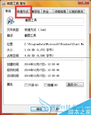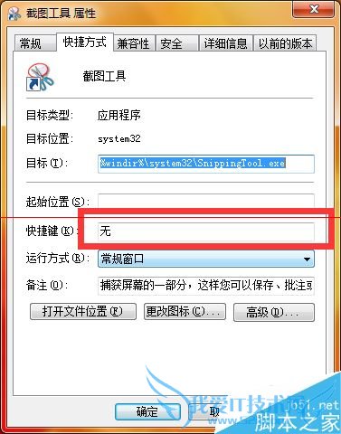 4、在弹出的属性选项卡中选择快捷方式,然后我们可以看到快捷键那一栏为空。