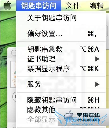 点击Mac顶部菜单栏的“钥匙串访问”,选择“偏好设置”