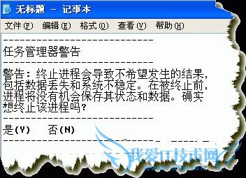 这里假如我要关闭“任务管理器”中的某个进程时会弹出警告提示窗口,如下图所示:
