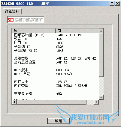 点击选项卡中的“详细信息”按键可以更清楚地了解到显卡的核心型号、显存型号、BIOS日期、生产厂商代码等显卡的内部信息,方便用户查看显卡 真正的型号,可以避免奸商通过修改驱动,欺骗用户的情况。另外升级显卡BIOS、安装厂商定制的驱动程序所需要的相关信息也是从这里了解(图2)。