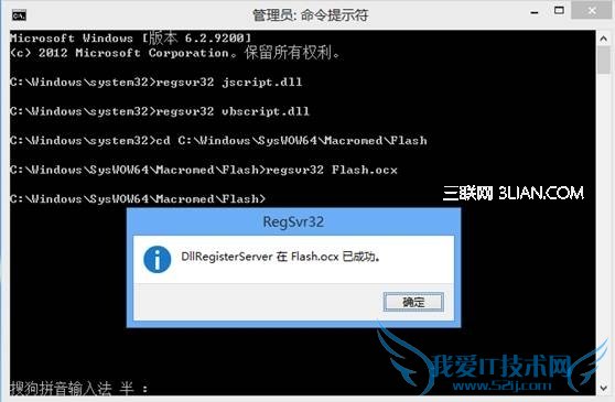 (5)输入“regsvr32 Flash.ocx”回车(不包括双引号)