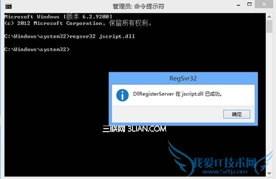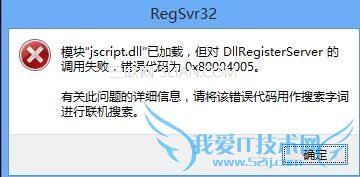 注意:如果输入regsvr32 jscript.dll后系统提示dllregisterserver调用失败,如下图: