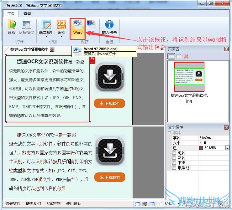 5、点击软件上方的“Word”按钮将识别结果以Word格式输出即可。