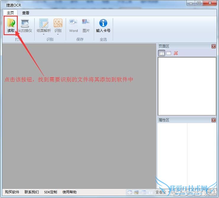 1、打开捷速ocr文字识别软件后,点击软件左上角“读取”按钮将需要识别的文件添加到软件中,软件支持JPG、GIF、PNG、BMP、TIF图片文件格式和pdf文件。
