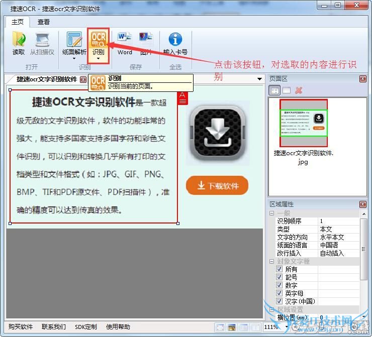 3、点击软件上方的“识别”按钮,对选定的内容开始进行识别。