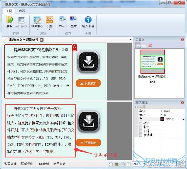 4、识别过程瞬间结束,大家可以看到软件下方出现识别的结果,并对其进行核验。(文字出现颜色只是软件识别的结果,对最终文字没有任何影响)