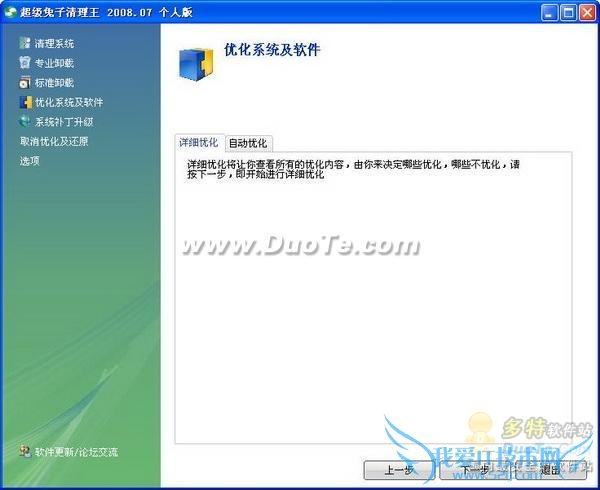 详细优化将让你查看所有的优化内容,由你来决定哪些优化,哪些不优化,请按下一步,即开始进行详细优化。