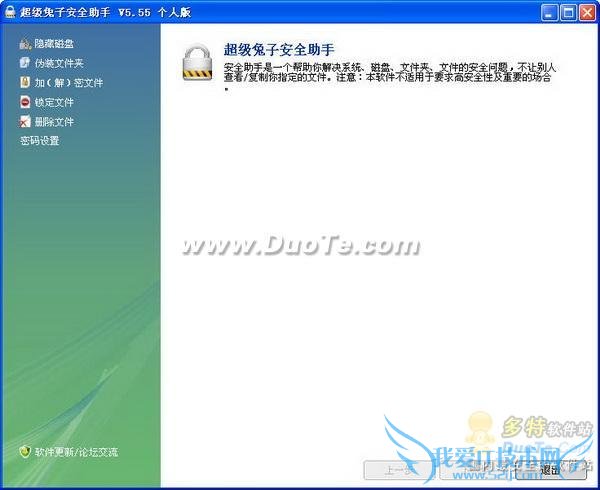 安全助手:隐藏磁盘、文件加密。保护电脑、硬盘、文件夹及文件,不让别人使用,或者删除顽固文件。