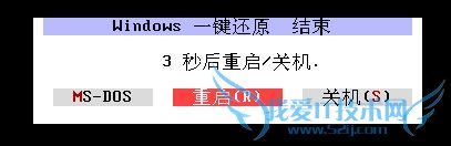 完成还原后会弹出结束对话框,重启后系统便会自动进行还原操作了。