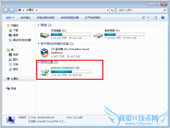 打开虚拟机“计算机“,可以看到共享的文件夹,这样就可以从虚拟机上访问指定的主机文件夹了