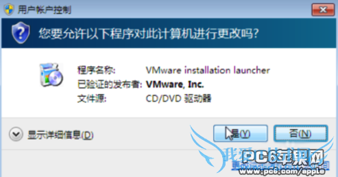 4、接着系统会提示是否要运行 Vmware 的安装程序,点击“是”按钮继续 。