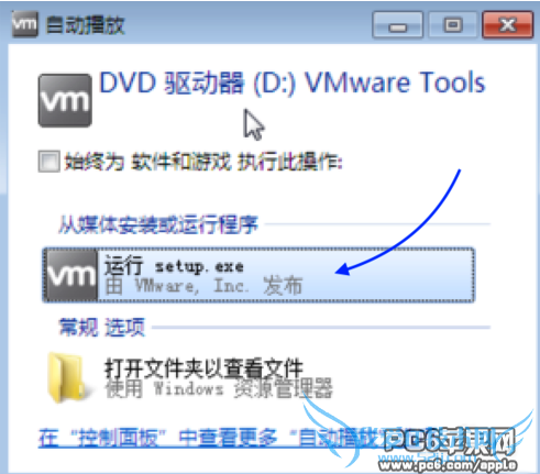 3、随后请耐心等待一下,一般会在 Windows 系统中自动弹出安装 Vmware Tools 的提示。点击“运行 Setup.exe”选项即可。