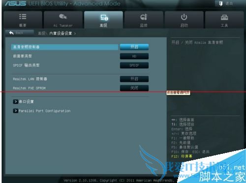4、安装好了后,可以开机进bios,进行主板声卡的屏蔽,找到Advanced里面的audio有关选项,将里面设置改为禁用Disabled