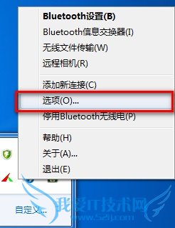 设置蓝牙程序。右键该图标,选择选项。