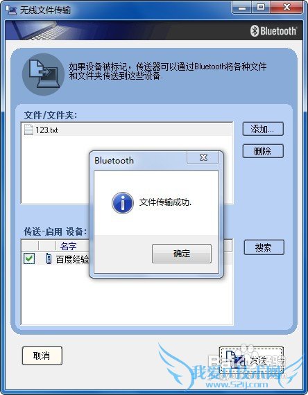 电脑蓝牙搜索到了手机,并添加到传送对相处。如果手机蓝牙对象很多,你可以选择其中几个作为发送对象。
