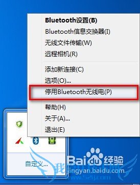 断开蓝牙。右键点击桌面右下角的蓝牙图标,选择停用后退出停止蓝牙。