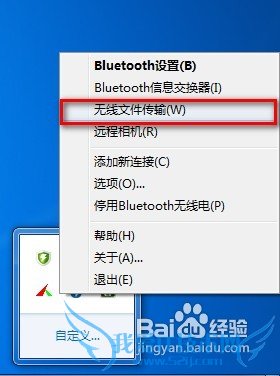 右键点击托盘中的蓝牙符号,选择无线文件传输。此时,手机已经打开(激活)。