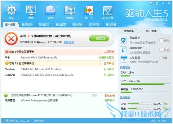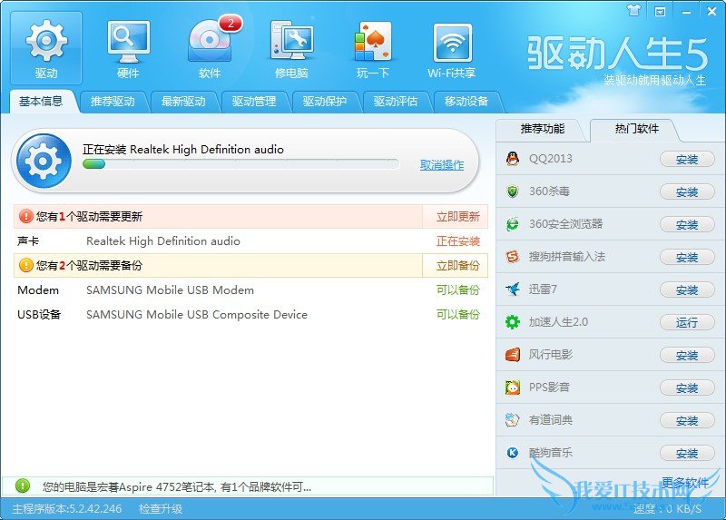 用户可根据驱动人生5的提示对声卡驱动进行更新,软件会自动下载合适的驱动修复问题。