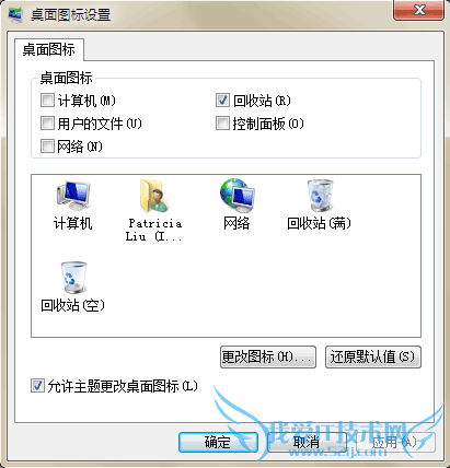d) 桌面图标设置 窗口会弹出,我们可以进行自定义设置。