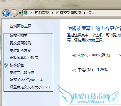对应于其他的家庭高级版以上系统的 个性化 组件,在家庭基础版系统中可以在 显示 这个组件实现主题、桌面背景、屏幕保护程序和显示字体大小的设置。点击 显示 组件后,我们会看到以下画面,我们可以通过下图左侧红框中的选项进行相应的设置。对应于家庭高级版以上系统中的主题,家庭基础版中只有简单的配色方案 。