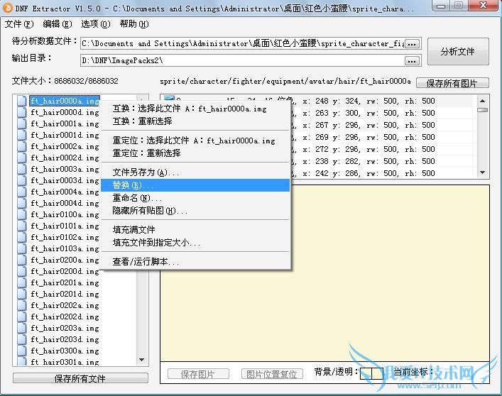 即格斗家的头发文件。然后右键点击第一个文件ft_hair0000a.img,出现编辑列表点击替换。