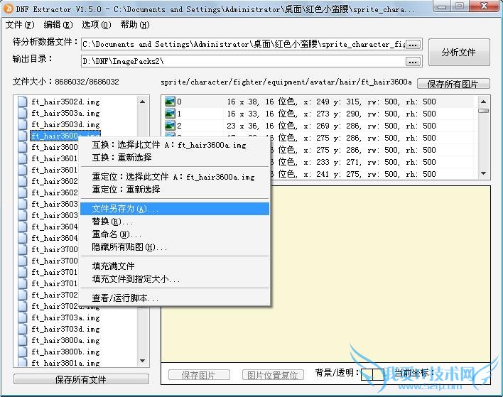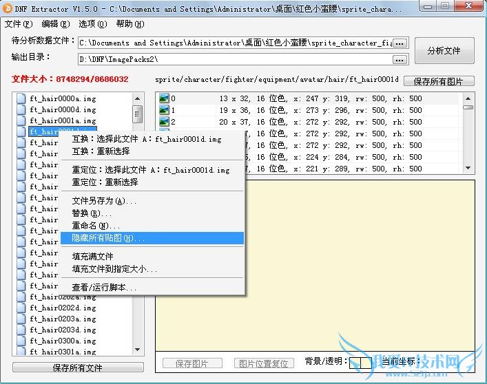 下好后把红色小蛮腰里面的文件都放到ImagePacks2文件夹里,提示覆盖后选择是,然后再用DNF Extractor,开启文件大小优化模式,然后打开文件sprite_character_fighter_equipment_avatar_hair.NPK