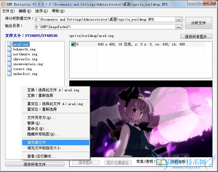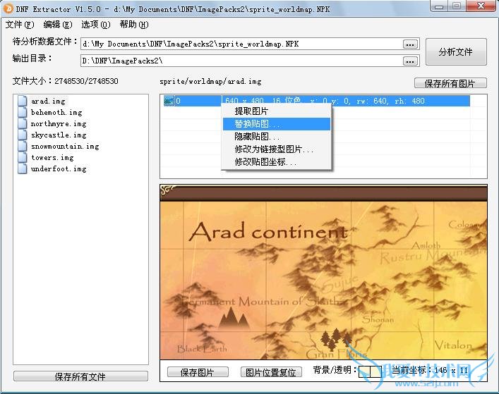 首先用3楼的方法改好图片,然后打开所要修改的文件,这里用sprite_worldmap.NPK做例子,即地下城选择界面的背景图片,选中所要替换的文件。