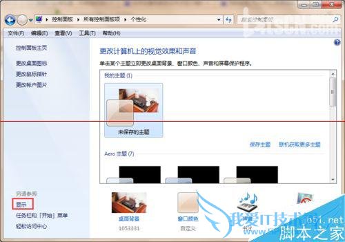 2、点击【个性化】选项,进入控制面板个性化界面,在左侧菜单栏里可以看到【显示】选项,如下图所示。