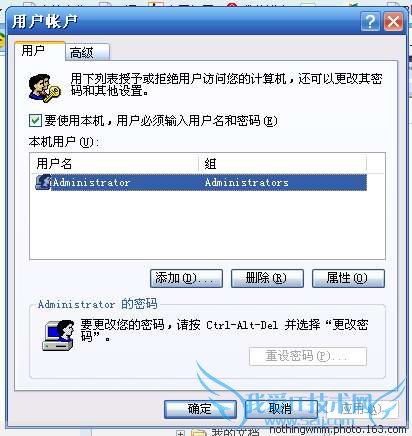 3、选中“用使用本机,用户必须输入用户名和密码”。重启后即出现多用户的登录界面,选择用户输入相应密码即可进入。