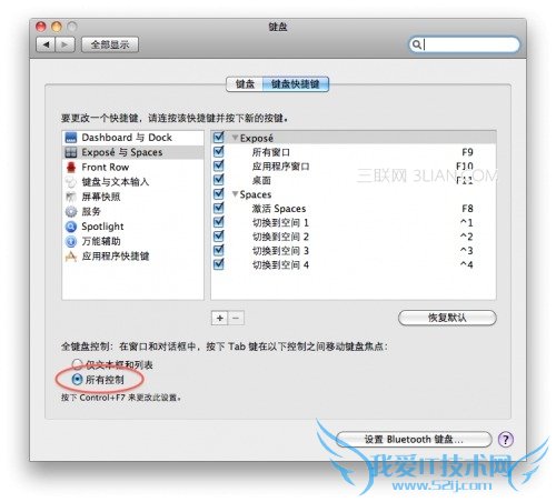 如果不用鼠标或者触摸板你按回车只能关机,可是手又很懒怎么办。 Step1:系统偏好设置-键盘中选中“所有控制”
