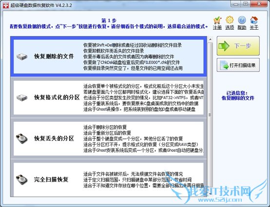 故障描述:一个U盘用来存放旅游照片和其他资料信息,数据较为重要,在某次存新数据时,不小心按Shilf+Del把一个存放照片的目录删除了,现在想把这个丢失的目录找回来。我们以超级硬盘数据恢复软件为工具,一步步教怎么操作来恢复文件。